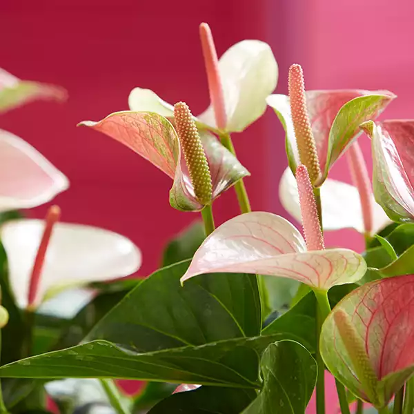 Die Flamingoblume (Anthurium-Hybride) gehört zu den Aronstabgewächsen und stammt ursprünglich aus dem tropischen Regenwald Mittel- und Südamerikas. Sie hat sich zu einer der beliebtesten Zimmerpflanzen entwickelt.