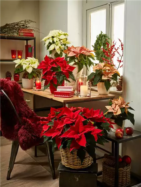 Mit seinen unterschiedlichsten Blüten- und Blattfarben in Rot, Creme, Apricot, Rosa, Weiß und sogar zweifarbig, gehört der Weihnachtsstern zum festen Bestandteil jeder Weihnachtsdekoration. Ob als farbenfrohes Highlight auf einer Kommode, mit vielen Mini-Weihnachtssternen in einer Reihe als Tischschmuck oder im Adventskranz – jeder Weihnachtsstern hat seine ganz besondere Ausstrahlung. Weihnachtssterne lieben Licht. An einem hellen Platz, einer Raumtemperatur zwischen 18 – 20 °C und einer leicht feuchten Erde geben Sie ihm die besten Bedingungen für eine langlebige Zimmerpflanze.