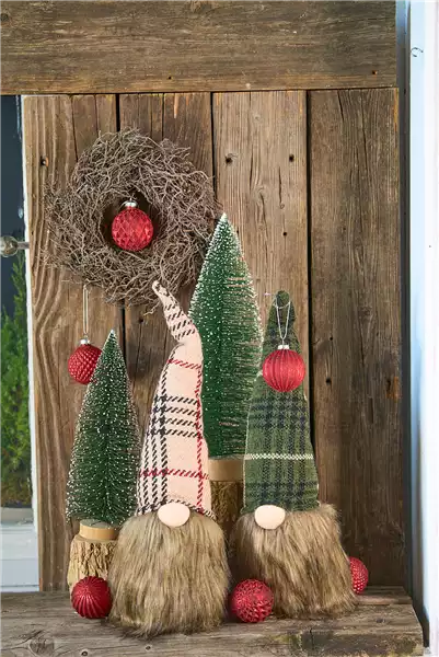 Kunststoff mit einem Holzfuß eignen sich mit ihrer winterlichen Natürlichkeit für jede Dekoration.