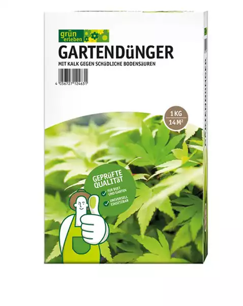 Dazu passend: grün erleben GARTENDüNGER ist ein hochwertiger organisch-mineralischer Universaldünger für Gemüse, Gewürzkräuter, Beeren-, Kern- und Steinobst sowie Zierpflanzen. Durch den grün erleben GARTENDüNGER werden Ihre Pflanzen mit allen notwendigen Nährstoffen versorgt. Der extra hinzugefügte Kalk beugt gegen schädliche Bodensäuren vor..