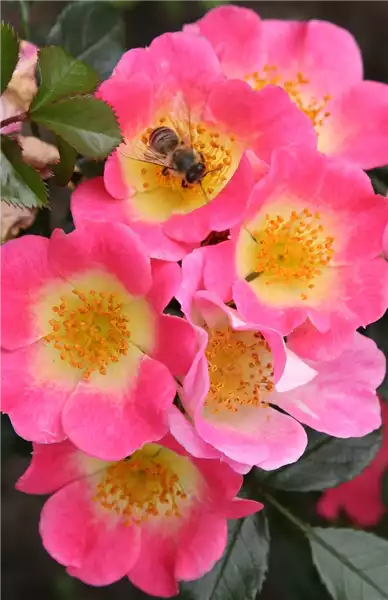 Ein Garten ohne Rosen – unvorstellbar. Naturnahe Gärten sind im Trend und mit einer Nektargarten®-Rose (Rosa- Hybride) helfen Sie mit, dass Bienen und andere Insekten genügend Nahrung finden. Mit ihren einfachen Blüten gelangen sie leicht an die Staubblätter. Durch ihre vielen verschiedenen Farben, Sorten und Wuchshöhen sind Nektargarten®-Rosen für viele Bereiche im Garten geeignet. Einige der Rosen bilden im Herbst Hagebutten. Diese sehen nicht nur schön aus, sondern schmecken auch vielen heimischen Vögeln.