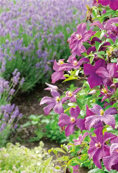Mit einer großen Auswahl an Blütenfarben und -größen zeichnen sich Waldreben (Clematis) aus. Das Farbspektrum reicht von Zartrosa über Rosa, Lila und Violett bis hin zu Blau und Purpur. Die Arten mit den eher kleinen und zarten Blüten sind in unseren Gärten am meisten zu finden. Es gibt jedoch auch große Exemplare mit bis zu 24 cm Blütendurchmesser. Da die Waldrebe kein Selbstklimmer ist, benötigt sie zusätzlich eine Rankhilfe. An einem absonnigen bis halbschattigen Standort fühlt sich die hübsche Kletterpflanze be-sonders wohl. Der Wurzelbereich möchte schattig stehen, die Blüten hingegen vertragen Sonne gut.