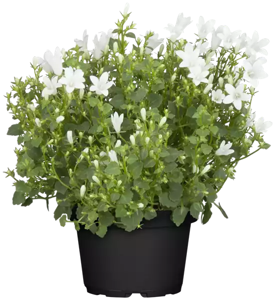 Die Glockenblume 'Get Mee®' (Campanula portenschlagiana) ist sowohl für die Wohnung als auch für den Balkon oder Garten geeignet. Sie ist eine polsterbildende und wintergrüne Staude, die von Juni bis August trichterförmige Blüten bildet. Sie erreicht an einem sonnigen bis halbschattigen Standort eine Höhe von ca. 15 cm und wird bis 30 cm breit. Wenn Sie Ihre Glockenblume im Sommer einen Platz an der frischen Luft geben möchten, dann werden ihre Blüten von vielen Bienen und Schmetterlingen besucht.