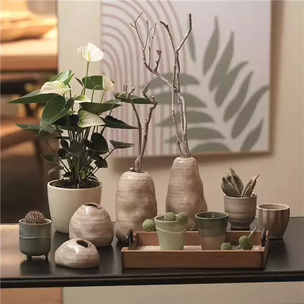 Nicht nur spezielle Farbtöne unterstreichen das Naturerlebnis bei „Green Emotion“, auch das Material, die Haptik und die unperfekten Formen von Gefäßen können eine naturnahe Stimmung erzeugen. Die kleinen Töpfchen aus Terrakotta und Vasen aus Keramik reihen sich nahtlos in den Trend ein und verleihen Ihrer Wohnung einen geerdeten und modernen Charakter.