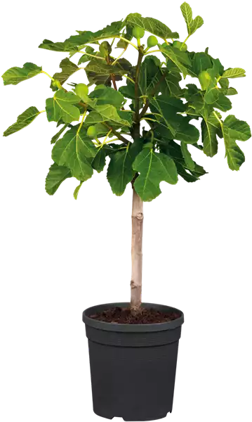 Mit den typischen dunkelgrünen Blättern gehört das Feigen-Stämmchen (Ficus carica) zu den Lieblingen auf Balkon und Terrasse. An einem warmen und sonnigen Platz bilden sich ab Juni Blüten, die von August bis November gesunde und schmackhafte Früchte tragen. Die süßen Früchte können roh oder auch getrocknet gegessen werden. Von Frühjahr bis Herbst sollten Sie das Feigen-Stämmchen regelmäßig gießen.