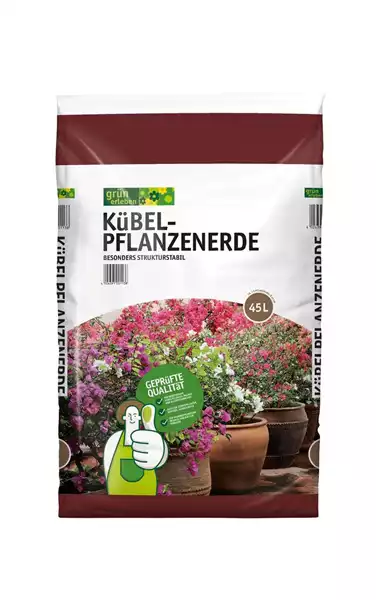 Die grün erleben KüBELPFLANZENERDE eignet sich für langlebige Kübelpflanzen sowie für die Kultur von Kakteen und allen anderen sukkulenten Pflanzen. Die grün erleben KÜBELPFLANZENERDE enthält sofort verfügbare Nährstoffe und Spurenelemente zur Förderung des gesunden Wachstums und der Blühwilligkeit Ihrer Pflanzen. Naturton verbessert die Pufferwirkung der Erde; Wasser und Nährstoffe werden gespeichert und bedarfsgerecht an die Pflanzenwurzeln abgegeben.