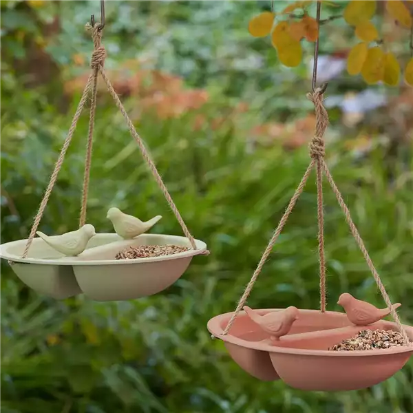 Die Vogelfutter-Stelle aus natürlichen Bambusfasern ist zweigeteilt und bietet Vögeln eine wichtige Futter- und Wasserstelle an einem Ort. Vogeltränken sind auch im Winter wichtig. Gefrorenes Wasser können Sie, wenn nötig, mehrmals am Tag durch warmes Leitungswasser ersetzen.