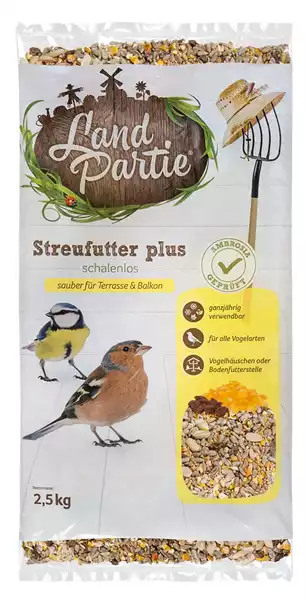 Das schalenlose Streufutter Plus können Sie ganzjährig verwenden. Somit bleiben Terrasse und Balkon sauber.
