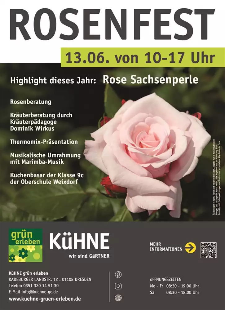 Freuen Sie sich auf einen inspirierenden Tag rund um die Königin der Blumen mit fachkundiger Beratung, genussvollen Momenten und musikalischer Begleitung bei Ihrer Gärtnerei Kühne.